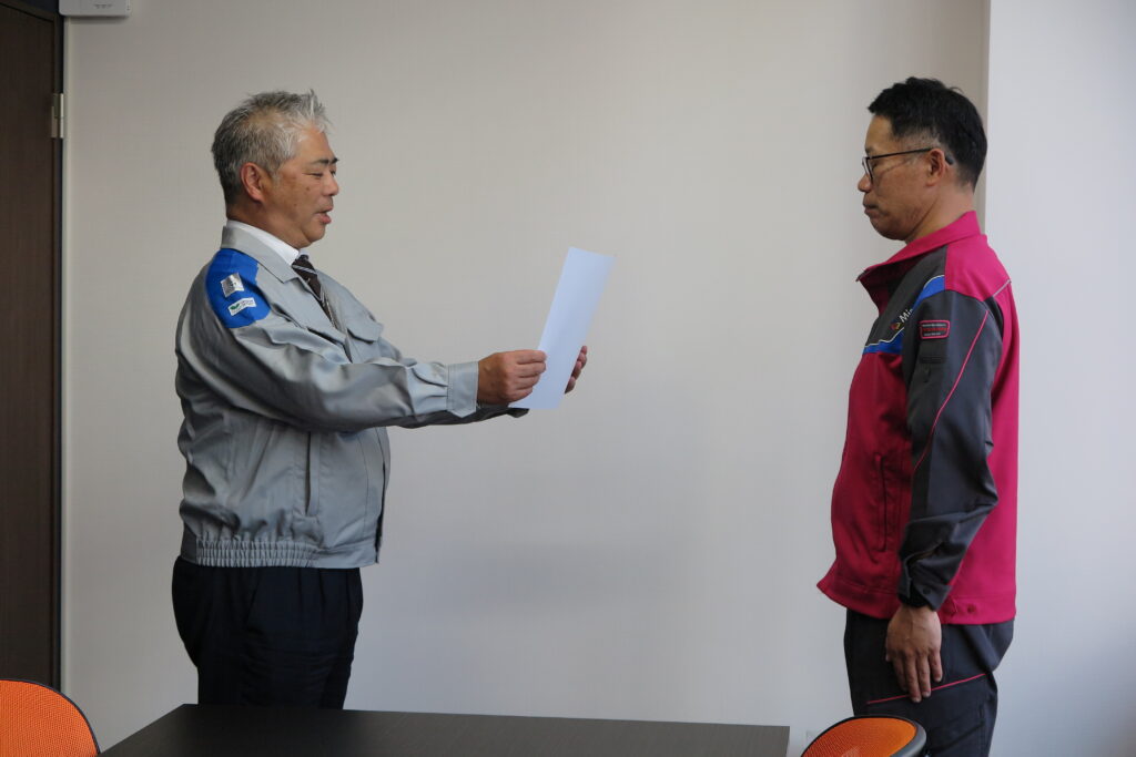 2025年12月10日、福岡本社において、九州電力送配電株式会社 送変電本部 送変電技術センター所長 布谷孝治様より贈呈いただきました。
