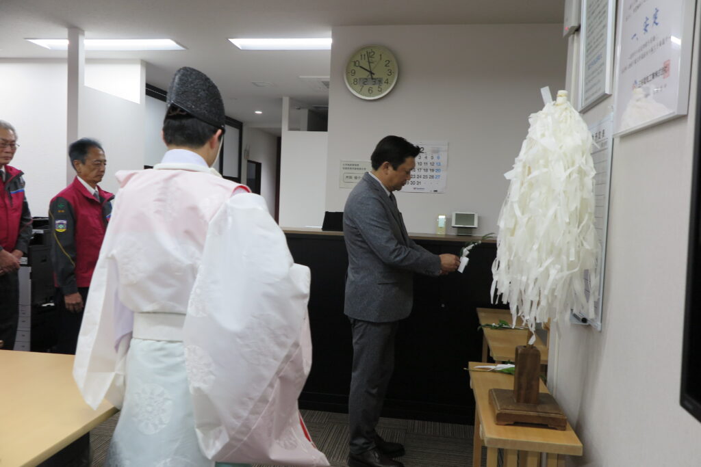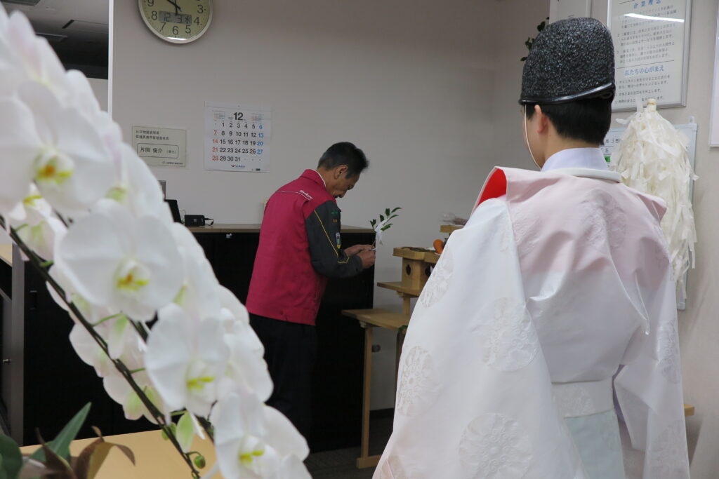12月1日より移転先での業務開始となった福岡本社にて、住吉神社様にお越しいただき、神事を執り行いました。