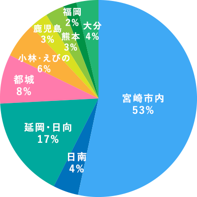 宮崎県内を筆頭に九州各地から入社いただいています